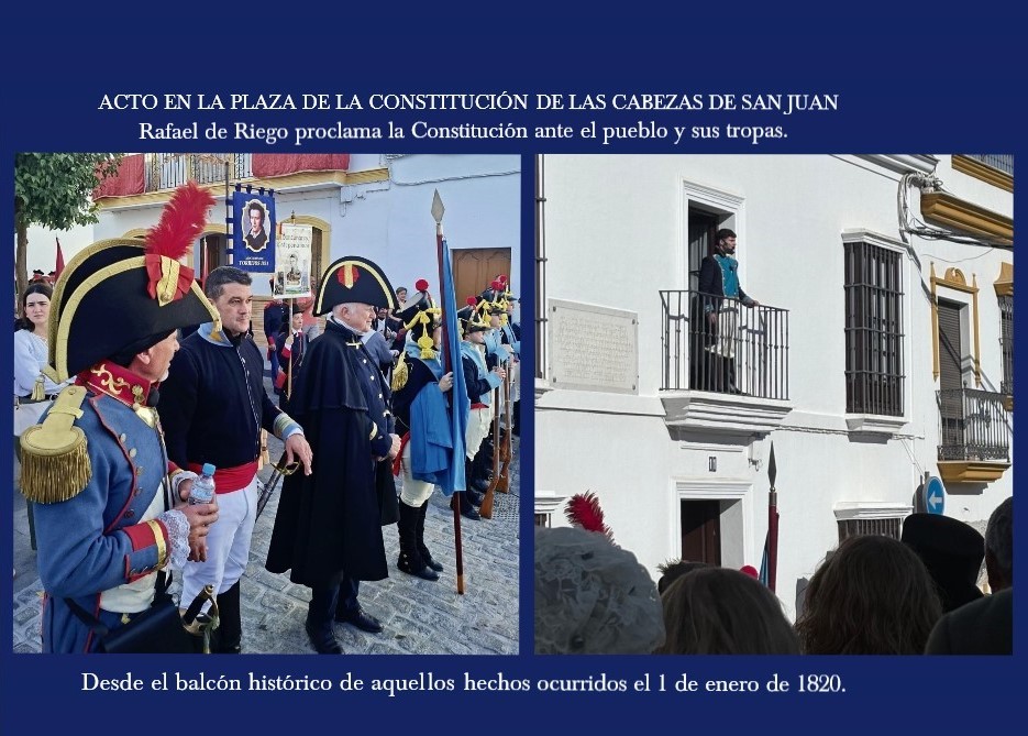 Asociación Torrijos 1831 23/10/2025 Tras abandonar en desfile las asociaciones históricas la Plaza de la Constitución, el último acto de homenaje al general Rafael del Riego en las Cabezas de San Juan, en la presente edición de 2025, tuvo lugar en la emblemática Plaza
