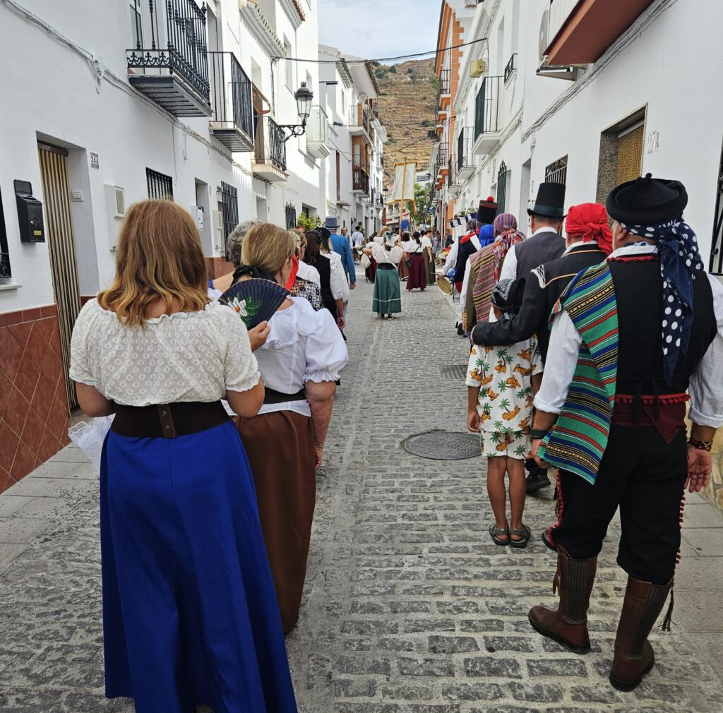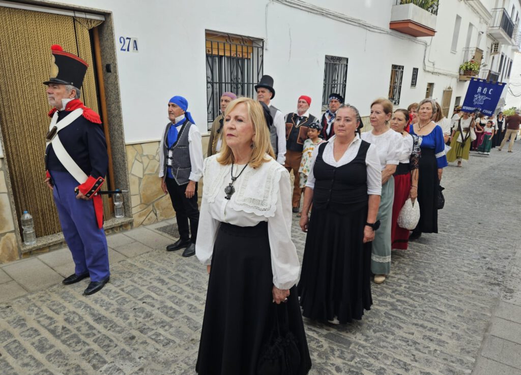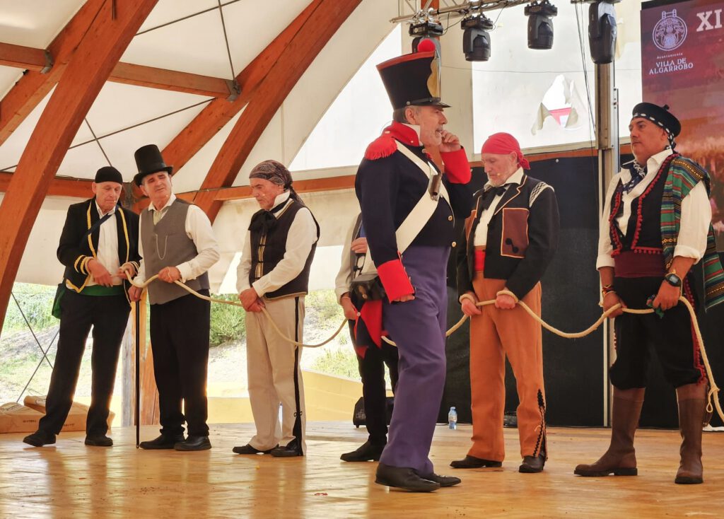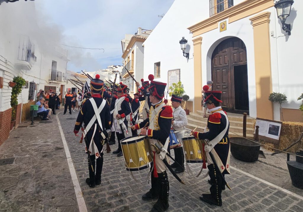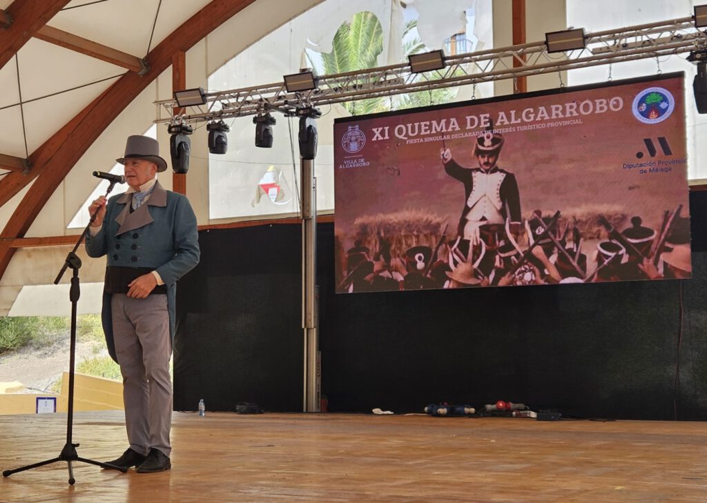 El pasado domingo 21 de septiembre, la Asociación Histórico Cultural Torrijos 1831 participó en el desfile realizado con ocasión de la 11ª Fiesta de Algarrobo, que cada año conmemora el intento de los franceses por hacer arder esta singular localidad de la Axarquía, en una acción de represalias durante la ocupación francesa de Málaga (1810-1812). Recordemos que, con nuestro estimado amigo Antonio Cordón, persona impulsora que supo prever el futuro que aguardaba a estas fiestas; la asociación Torrijos 1831 participó en las dos primeras ediciones de la Asociación Torrijos 1831, por entonces única asociación invitada, y germen de lo que son las actuales fiestas, que por mérito propio han alcanzado el puesto que gozan en la provincia de Málaga, gracias al colectivo local Asociación Quema de Algarrobo que, junto la importantísima ayuda del Ayuntamiento, las organiza. Recordar también, que nuestro presidente Esteban Alcántara fue, en su momento, uno de los pregoneros de la Quema de Algarrobo. Tras el desfile, a cada una de las asociaciones de recreaciones históricas que habían participado en el mismo, les correspondió hacer una recreación propia para el público, en el estrado levantado para los efectos en el centro del pueblo. La Asociación Torrijos 1831 teatralizó la última noche de los liberales de Torrijos, en el Refectorio del antiguo convento de San Andrés, con Alicia Gallego interpretando la Libertad, y Carmen Casán cantando la popular “cuerda de presos”, bajo los redobles bien acompasados de tambor, de Paco Gómez. Al finalizar el acto, la alcaldesa de Algarrobo entregó unos bonitos recuerdos a nuestra Asociación.