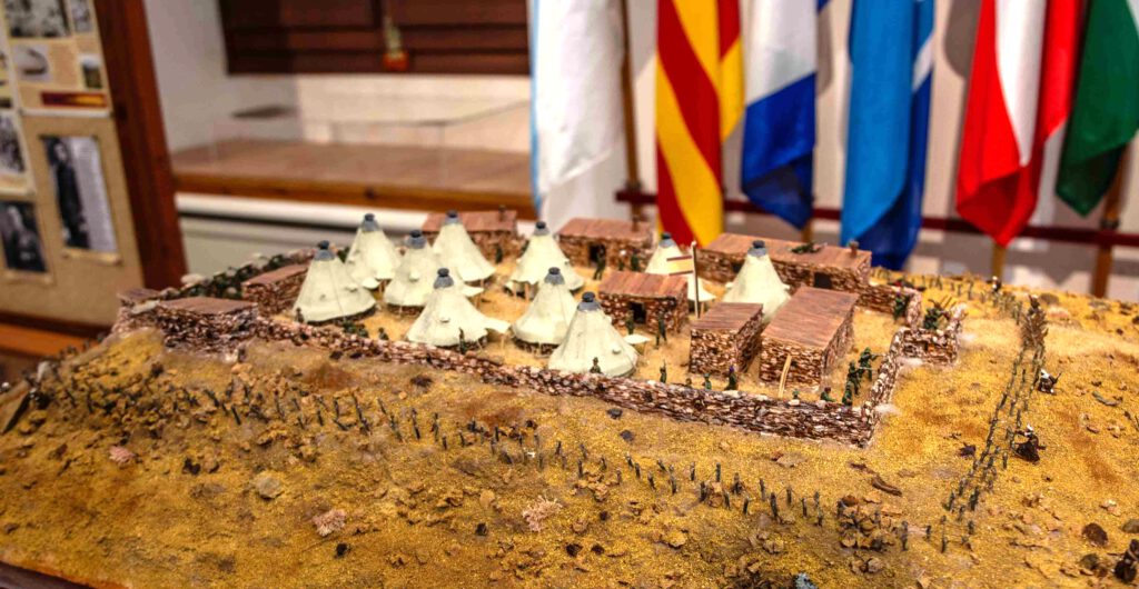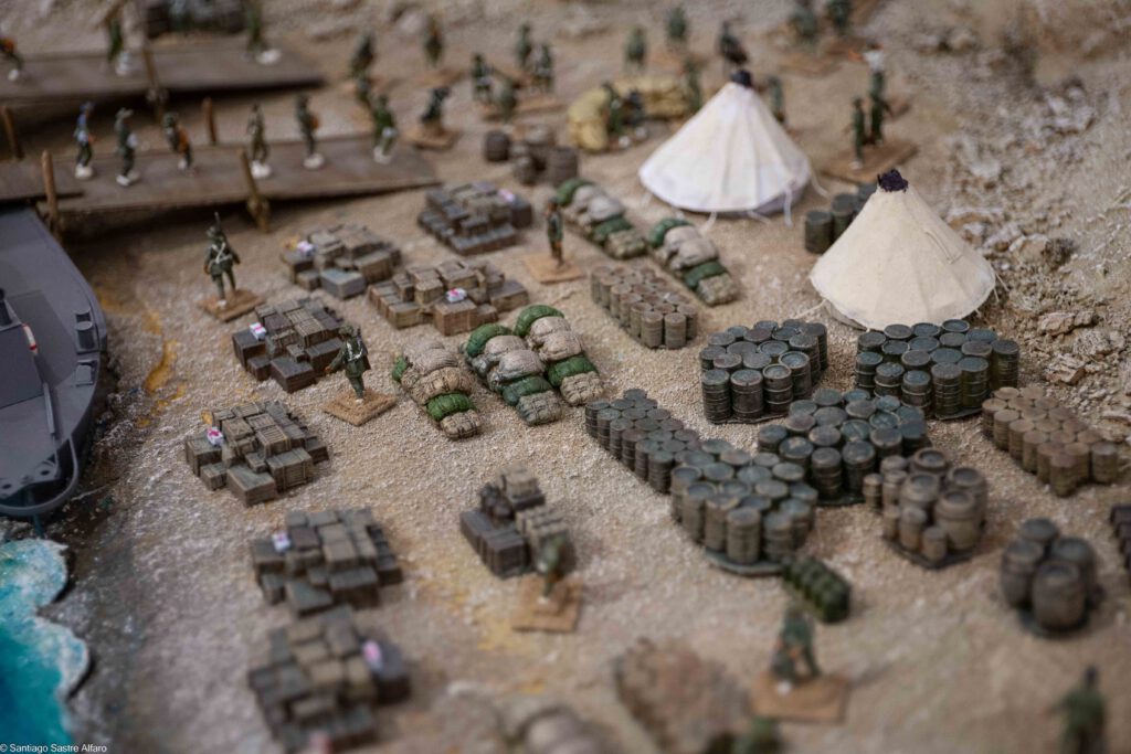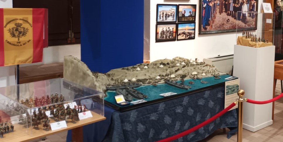 Corrió a cargo el concejal Francisco Cantos que, tras retirar la cinta que abría la exposición, tuvo la oportunidad de ver, junto con los demás visitantes, el video del Desembarco de Alhucemas, remasterizado muy acertadamente por el teniente retirado Francisco Moreno Lara que, presente en ese momento, explicó la labor de mejora llevada a cabo con ese documental histórico, en la que se incluye la música, obra de su hermano el comandante retirado Pedro Moreno, ambos con muchos años de servicios en las unidades de Regulares, de Ceuta y Melilla. A partir de ahí, los visitantes fueron viendo el gran diorama del Desembarco de Alhucemas, y otros relacionados con los sucesos acaecidos en 1921, como la carga de caballería del Regimiento Alcántara en el cauce del Igan, el ataque rifeño al aeródromo de Zeluán, la resistencia de Monte Arruit, o la defensa de la posición de Igueriben por el Comandante Benítez; también, las láminas de aquella epopeya, libros, documentos y fotografías, etc. Todo el conjunto, resultó ser una noche de recuerdo sobre la historia que España, durante cinco años, escribió en Marruecos.