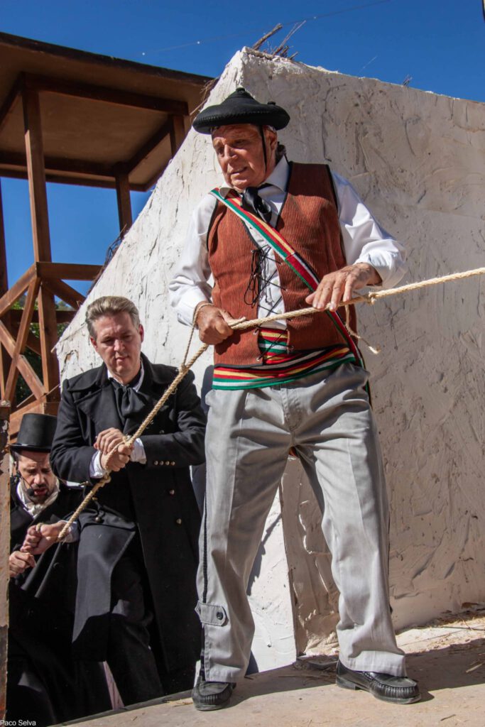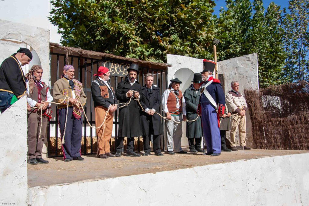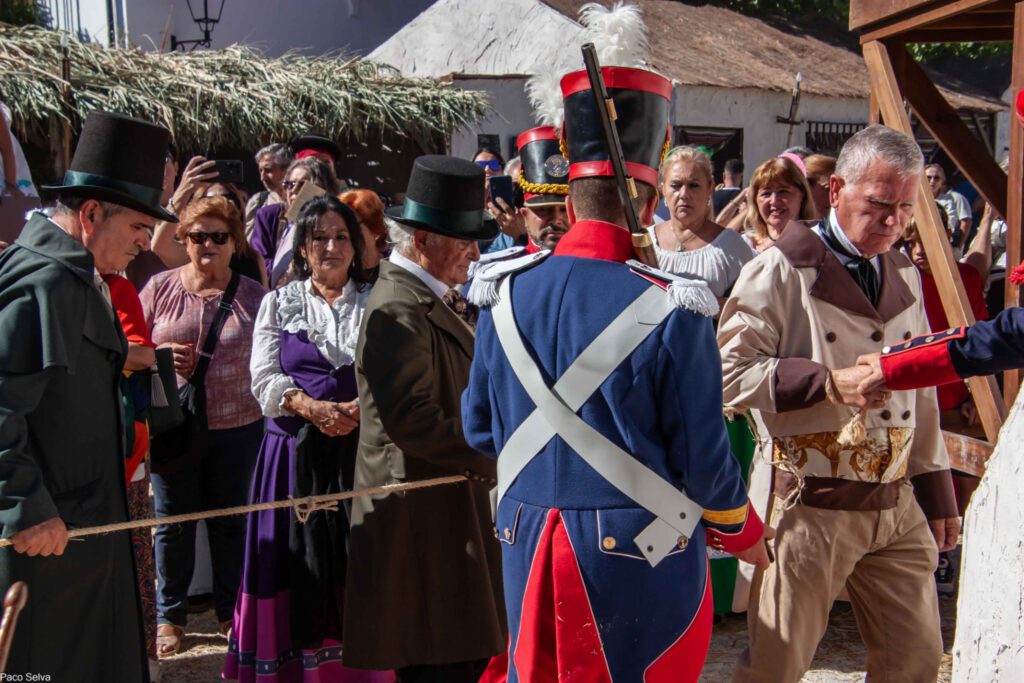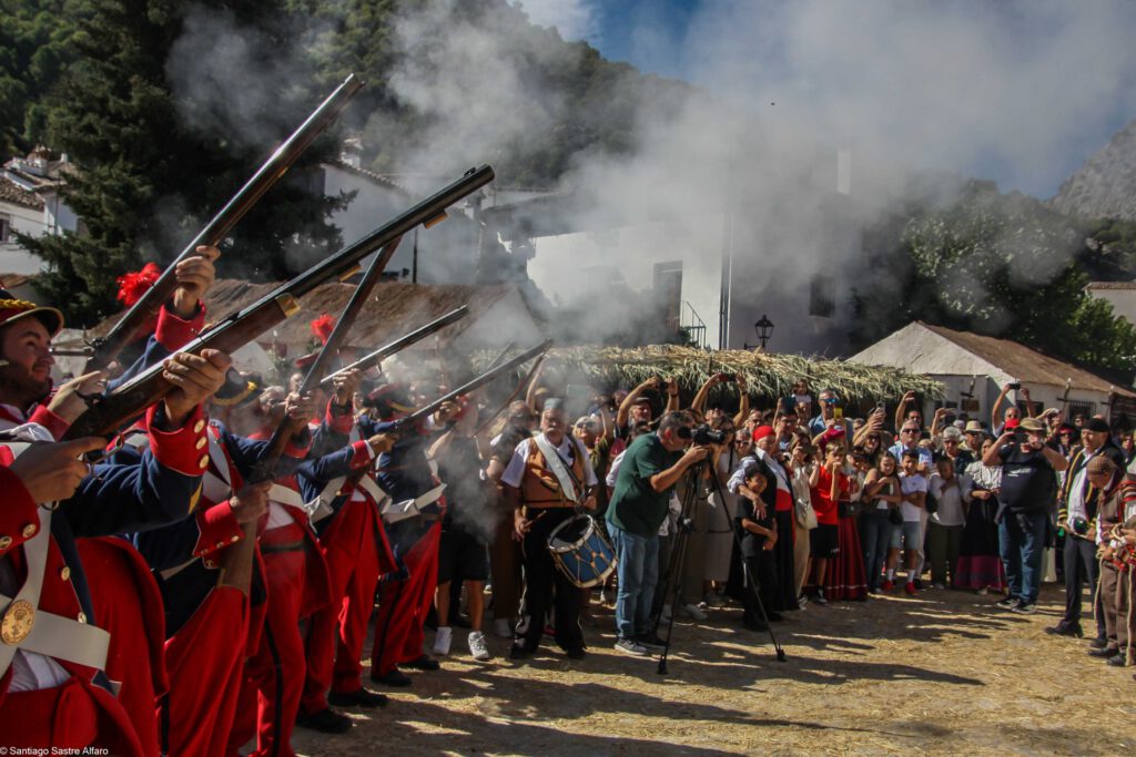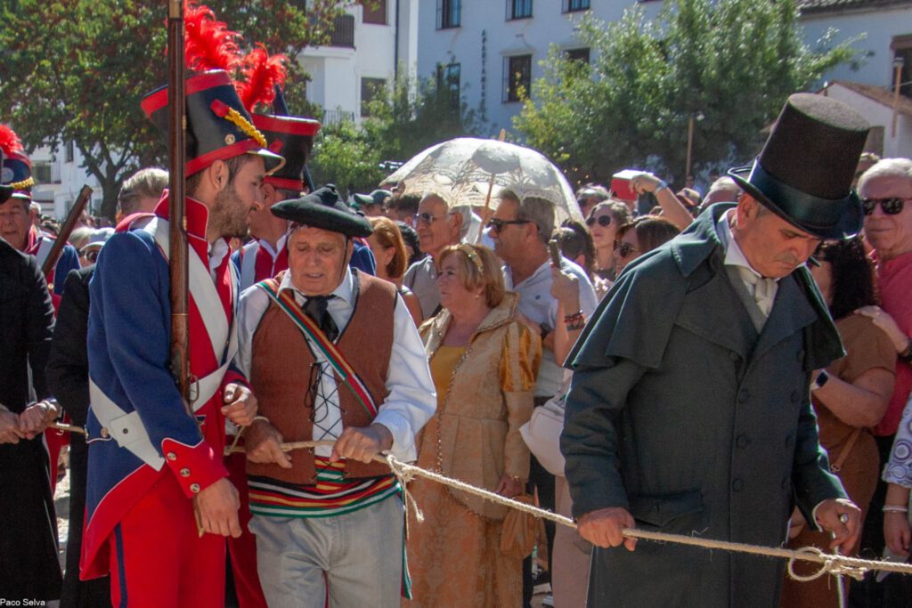 Invitada un año más por el Ayuntamiento de Grazalema y la asociación titular de este bellísimo pueblo gaditano, Bandoleros de Grazalema, el pasado 5 de octubre del presente 2025, domingo, la recreación “Réquiem por Torrijos” interpretada por los componentes de la Asociación Histórico Cultural Torrijos 1831, brilló una vez más ante los miles de visitantes que acudieron a la bella localidad de la sierra gaditana; tanto por la seriedad de su interpretación como por la solidez y singularidad de sus guiones propios. Presentó a la asociación su secretaria Flori Sastre, seguida por la introducción histórica de Esteban Alcántara. Después vino la interpretación de Enrique Parapar como Francisco Fernández Golfín, acompañado por los liberales de Torrijos, y la cantaora Mari Carmen Casán interpretando la “Cuerda de presos”, seguida por el redoble de tambor, realizado por Paco Gómez. Los liberales de Torrijos, detenidos y escoltados pasaron a prisión, en otra parte de los escenarios de Grazalema. Allí se interpretó “Los sedientos”, con José Antonio Millán, Carlos Corcoles, Sergio Doménech, José María, Miguel Vílchez y Juan Fernández, como actores principales, acompañados por Alicia Gallego representado la aparición de “La Libertad”. José Manuel Pérez protagonizó a González Moreno con voz en off. Tras el “fusilamiento” de los liberales de Torrijos, actuaron muy bien nuestras mujeres en la colocación del velos a los ya “difuntos” (agradecemos la colaboración de los «migueletes» de Grazalema en el acto del fusilamiento). En un siguiente artículo narraremos el final del acto de la Asociación Torrijos 1831, así como nuestros agradecimientos.