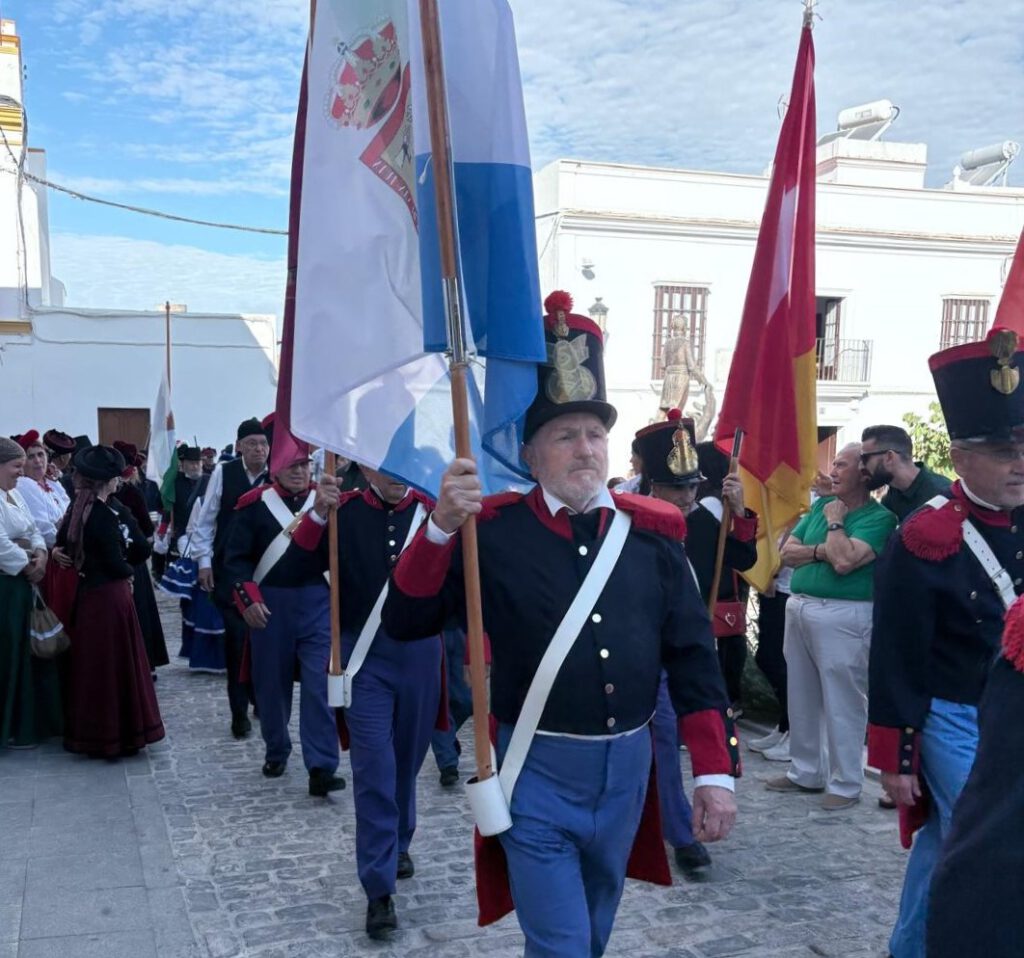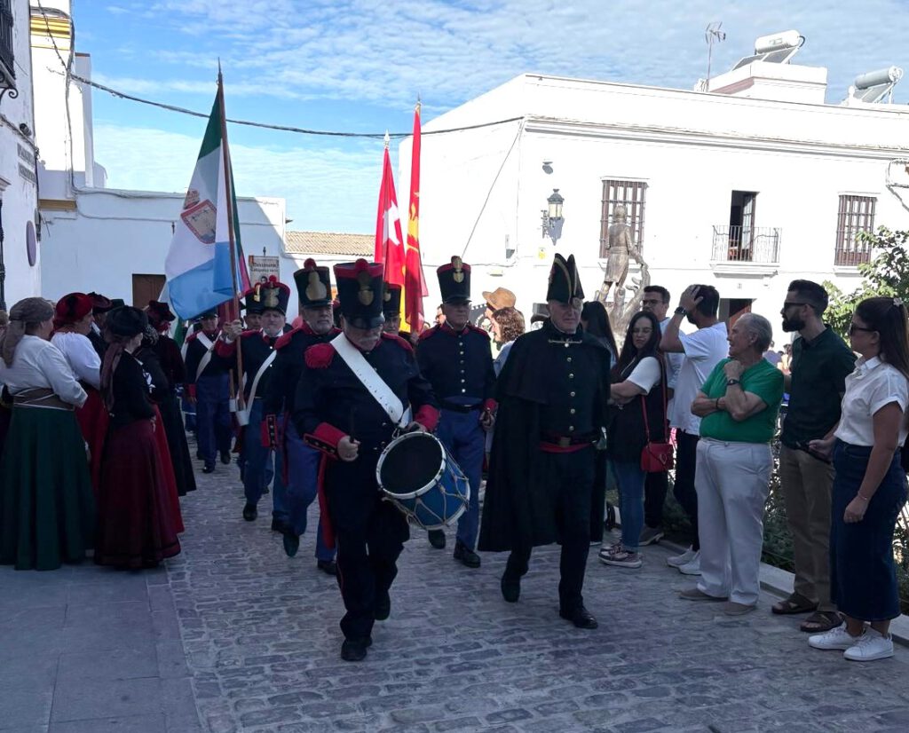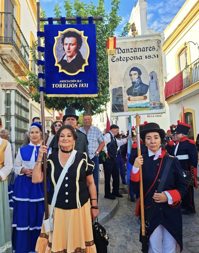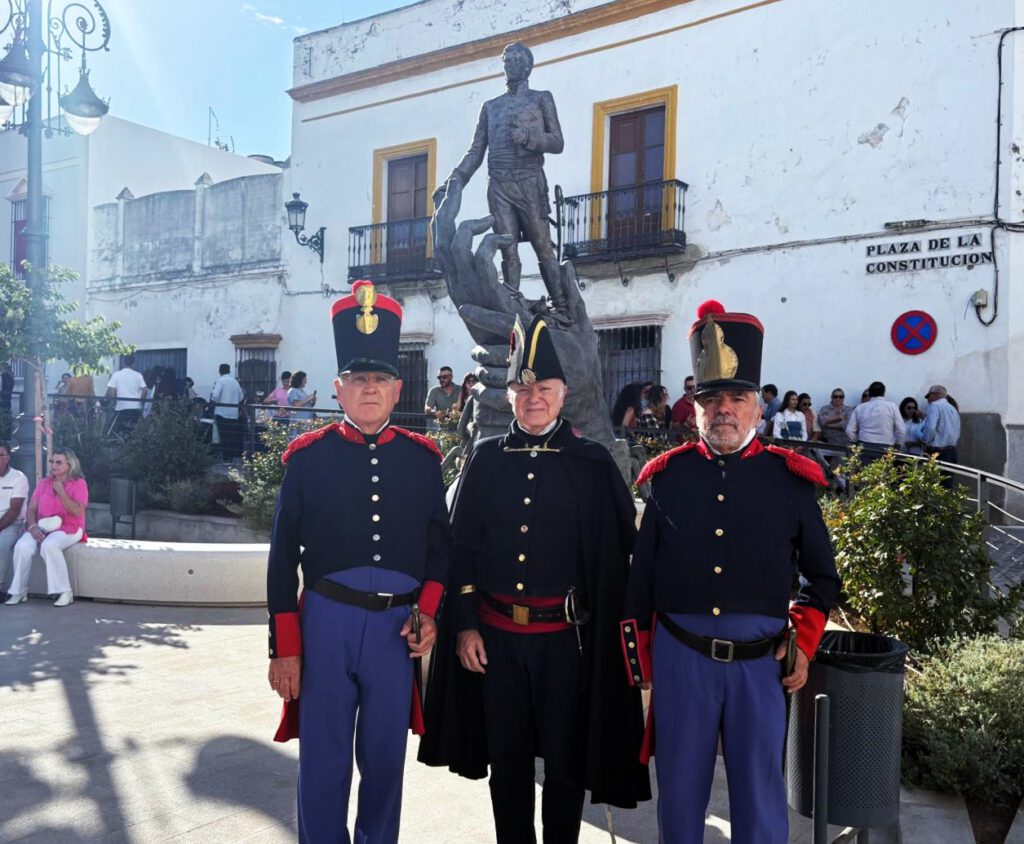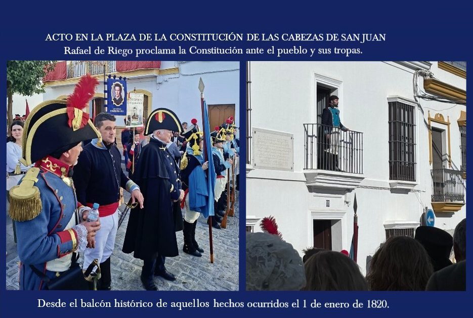 Al igual que otros colectivos de recreaciones históricas, de Andalucía, invitados a los actos de homenaje a Rafael de Riego por el Ayuntamiento de las Cabezas de San Juan; los integrantes de la Asociación Torrijos 1831, que tantos años llevamos dedicados a la memoria de los liberales decimonónicos, defensores de la génesis de nuestro sistema constitucional; hemos tenido la oportunidad de participar, un año más, de la recreación del pronunciamiento liderado por aquel héroe liberal el 1 de enero de 1820. Riego fue interpretado, muy acertadamente, por un joven actor cabeceño, que se ganó el aplauso general del público presente en la plaza, hoy llamada acertadamente, Plaza de la Constitución.