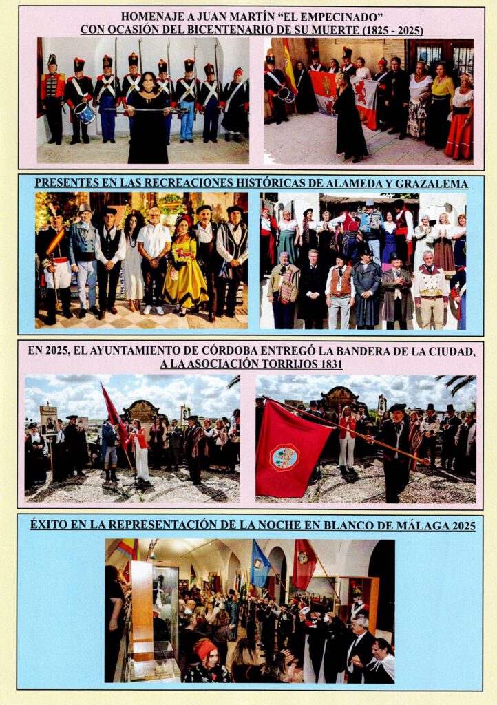 En este largo recorrido, y en reconocimiento por su labor histórica, le han sido entregadas a la Asociación Torrijos 1831 más de setenta banderas por instituciones y entidades. Además, en las amplias vitrinas de la sede de la asociación, posan un centenar de premios y trofeos, especialmente valorados por venir de las instituciones, entidades, colectivos y personas, que los entregaron. Finalmente citar, que hoy la gestión que se realiza y presenta en el Centro de Interpretación Histórico José María Torrijos, brilla con luz propia en el panorama cultural de Málaga.