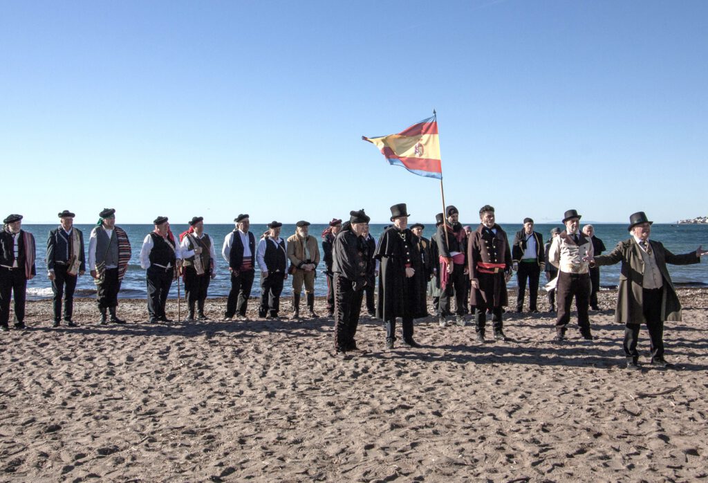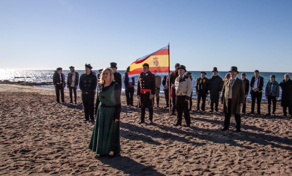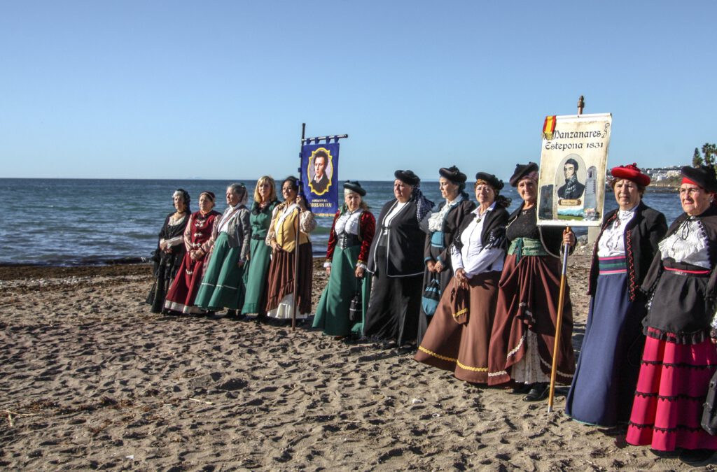 El sábado día 6 de diciembre 2025, los integrantes de la Asociación Histórico Cultural Torrijos 1831, acompañados por la Asociación Manzanares. Estepona 1831, todos vestidos a la usanza de aquel significativo año, han llevado a cabo una nueva recreación histórica del desembarco de Torrijos y sus liberales en el litoral mijeño, en referencia al realizado por los expedicionarios de Gibraltar, a primera hora de la tarde de aquel 2 de diciembre de 1831, en la playa de El Charcón. Además, estuvieron presentes seguidores de Torrijos procedentes de Marbella, Málaga y Mijas, y la Televisión 3-40, siempre fiel a recoger esta recreación cada año. También estuvo en el acto la Concejal de Cultura y Patrimonio de Mijas, Juan Carlos Maldonado Estévez, entidad que ha apoyado la recreación del Desembarco. Excelentes las fotografías de nuestro compañero Paco Selva, y muy bien Antonio Haro dando vida al general Torrijos, acompañado de los poemas de Enrique Parapar y Alicia Gallego, dedicados al histórico desembarco de aquellos liberales constitucionalistas. En aquel histórico 2 de diciembre de 1831, fueron unos pocos contra muchos, en pos de conseguir libertades y derechos para los españoles en el difícil tránsito de la siniestra “Década Ominosa” (1823-1833).