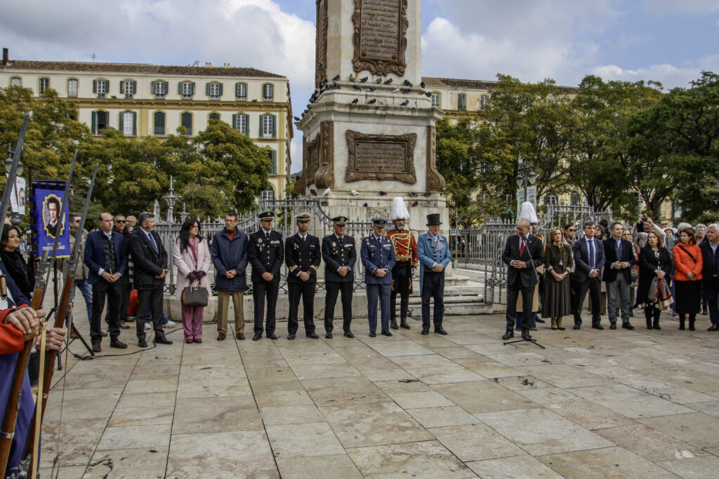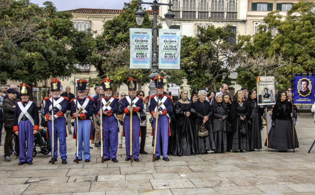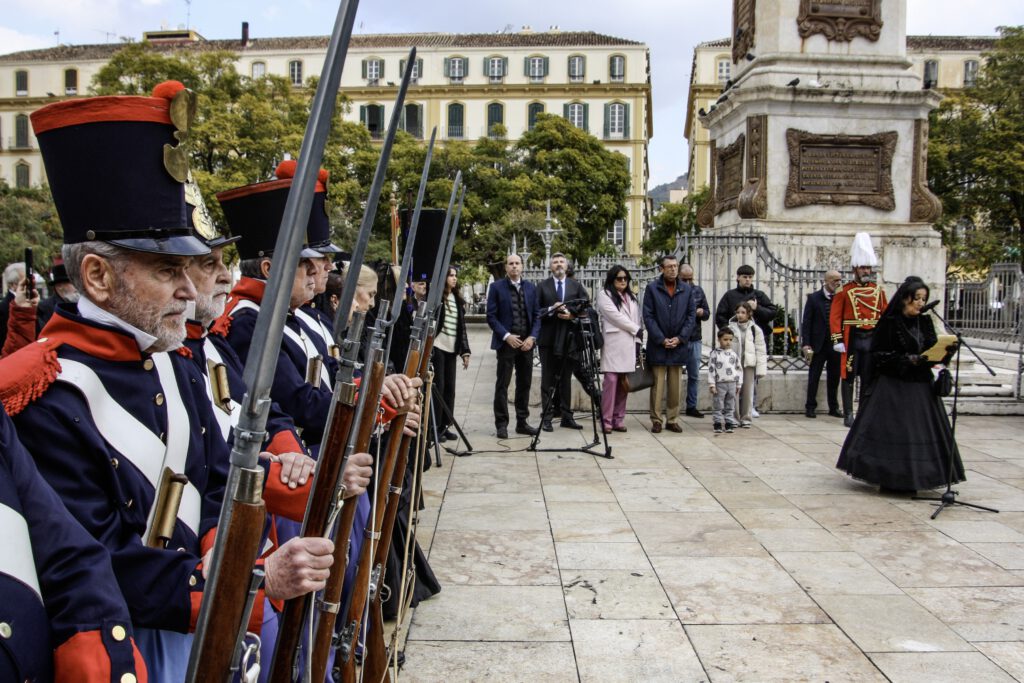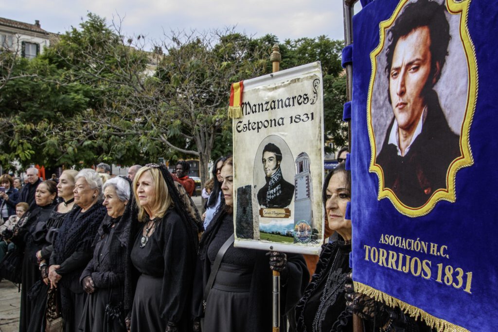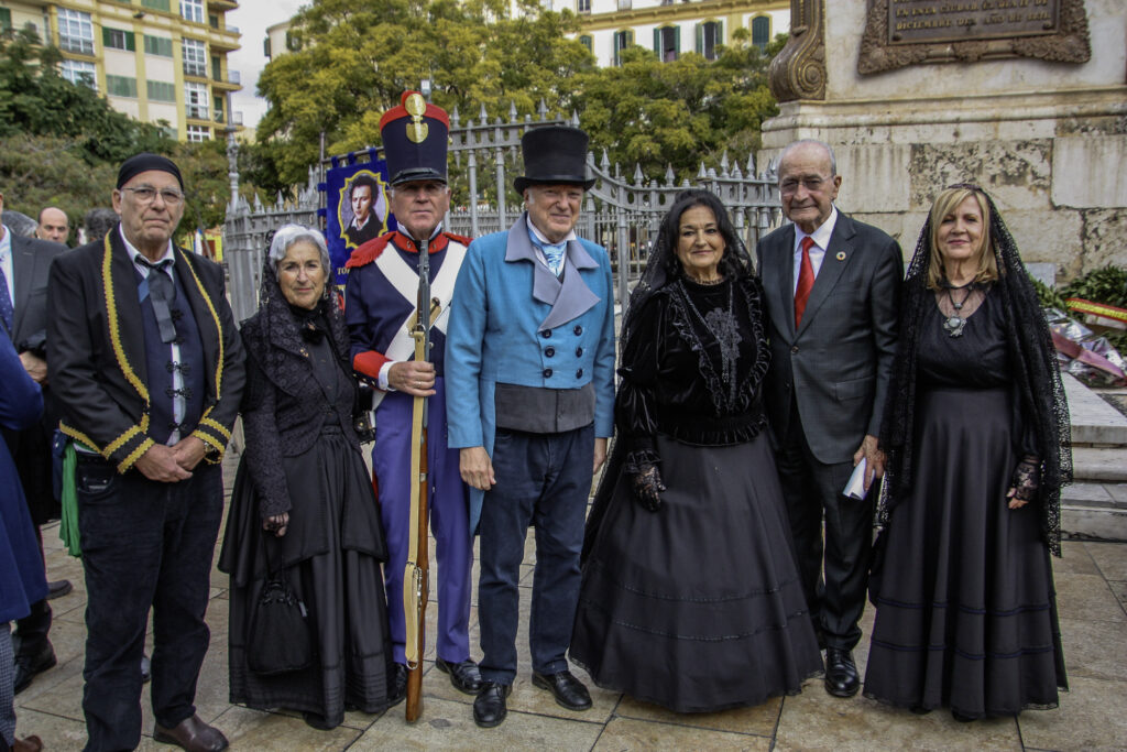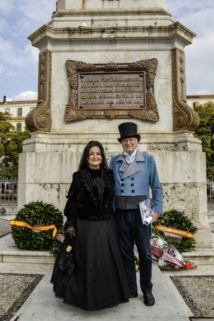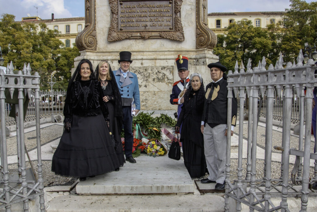 Tras las palabras del alcalde Francisco de la Torre, glosando la figura de Torrijos, se llevó a cabo la colocación de la corona institucional, a la que siguieron los acordes del Himno Nacional y el de Andalucía. Realizó la introducción al Réquiem, Esteban Alcántara, biógrafo de Torrijos y presidente de la Asociación Torrijos 1831, colectivo que día tras día realiza en el Centro de Interpretación Histórico José María Torrijos una destacada labor para difundir los hechos acaecidos en 1831. A partir de ese momento colocaron sus respectivas coronas, la Asociación Torrijos 1831, “Manzanares. Estepona 1831”, el “Club Liberal de Málaga 1812”, “Granaderos y Damas de Gálvez”, “Coloraos de Almería” y la “Fundación Andrés Collado” de Benarrabá. Tras las ofrendas, comenzó la propia recreación del “Réquiem por Torrijos”, representándose el fusilamiento de Torrijos y sus liberales. Alicia Gallego recitó con firmeza el célebre poema de Espronceda, y Flori Sastre realizó una interpretación cargada de emociones, de la carta a Luisa Sáenz de Viniegra. Muy bien Enrique Parapar dando vida a Fernández Golfín. Así, a las 14´00 h. acabaron los actos en la Plaza de la Merced. Las XXIV Jornadas terminan así para satisfacción de todos aquellos que las han hecho posible, con el agradecimiento a todas las personas, instituciones y colectivos, que nos han apoyado, con presencia y medios, un año más, y en las que no hemos olvidado, en ningún momento, a los compañeros/as que por cuestión salud y otros impedimentos mayores no han podido estar con nosotros. Aquello que creamos un día, insertado en el llamado “Musical Torrijos”, en 1999, el llamado “Réquiem por Torrijos”, es hoy la recreación más antigua de carácter laico en Andalucía. No puede sentirse en nuestros corazones un reconocimiento mejor en cuanto a los personajes que nos dedicamos, y más, si el acto final se lleva a cabo junto al imponente y mejor memorial que existe en nuestra ciudad: el monumento dedicado a Torrijos y sus compañeros en la Plaza de la Merced.