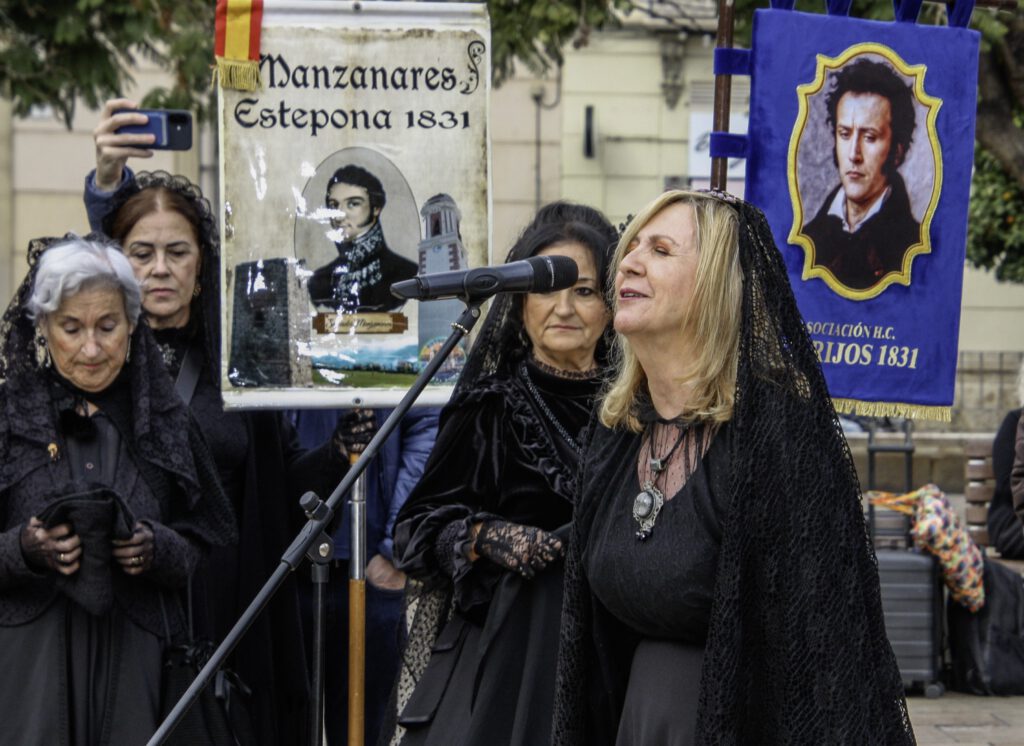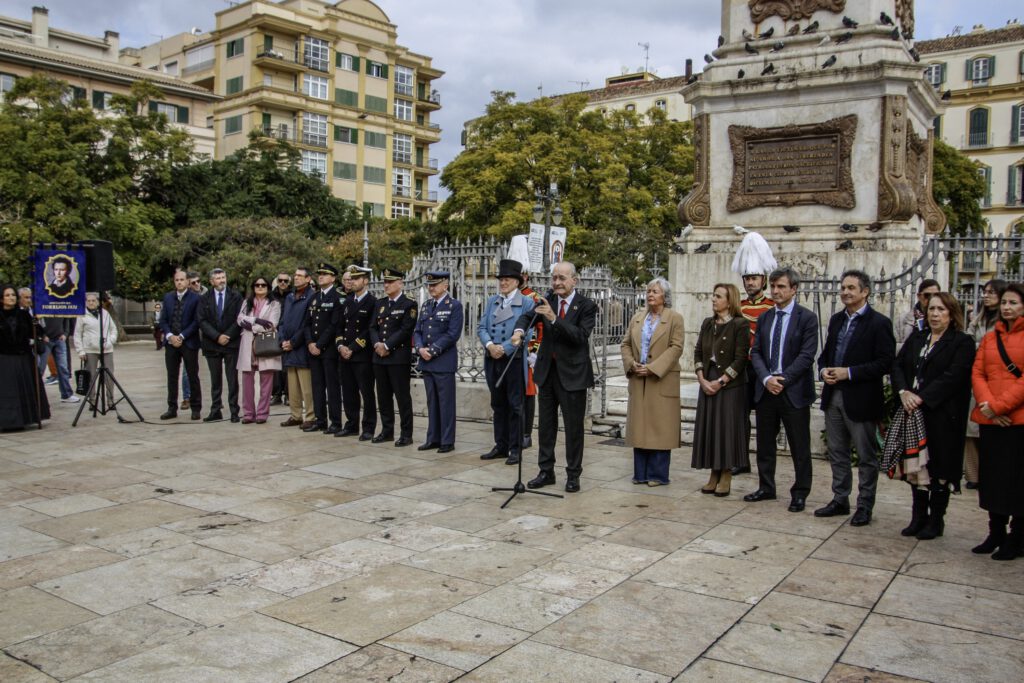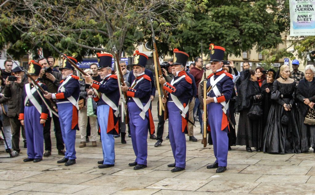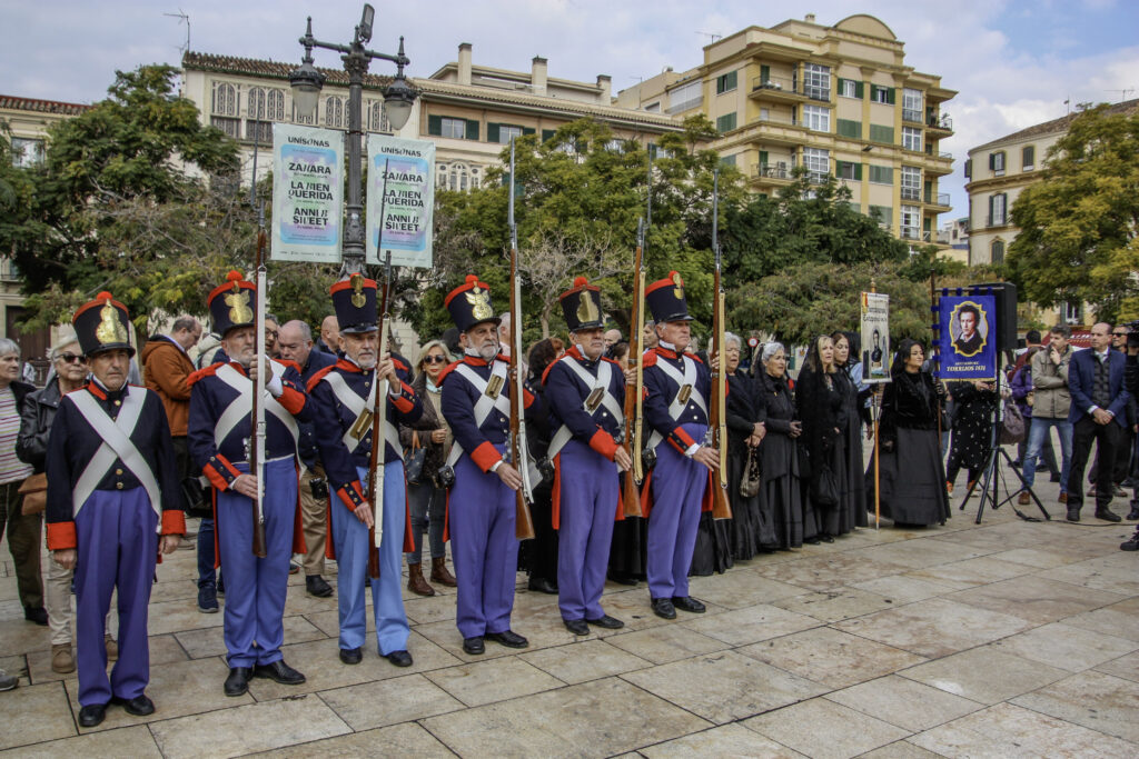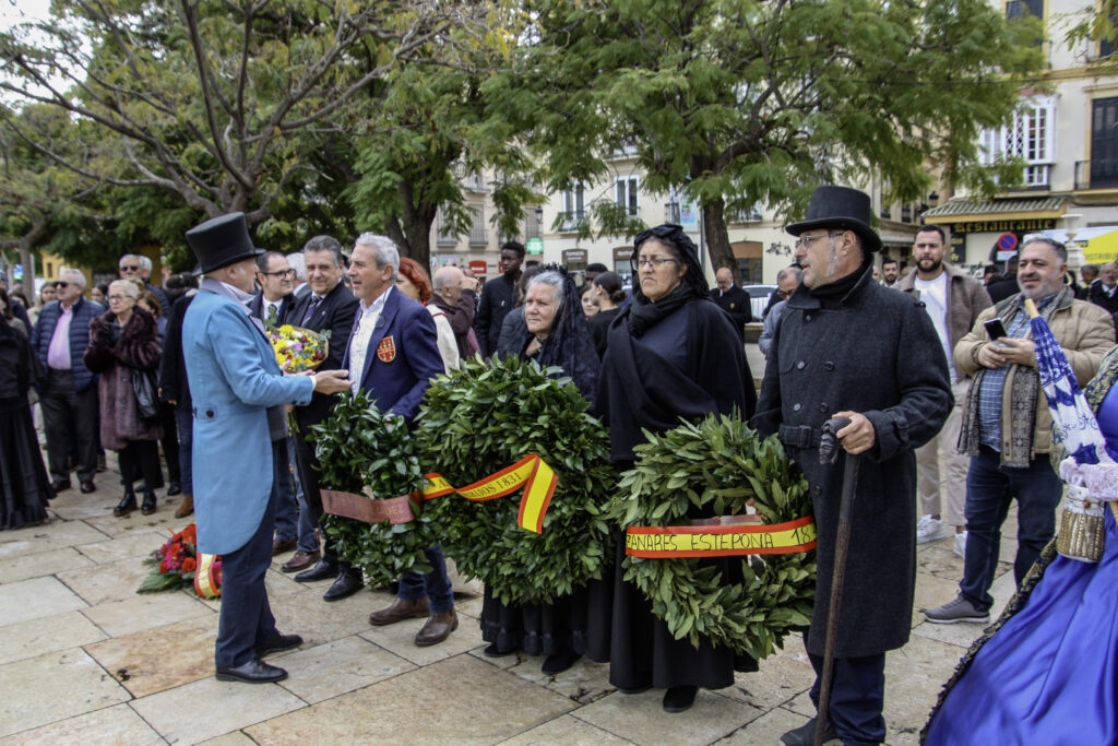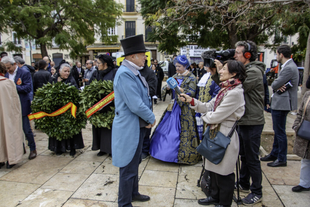 Tras las palabras del alcalde Francisco de la Torre, glosando la figura de Torrijos, se llevó a cabo la colocación de la corona institucional, a la que siguieron los acordes del Himno Nacional y el de Andalucía. Realizó la introducción al Réquiem, Esteban Alcántara, biógrafo de Torrijos y presidente de la Asociación Torrijos 1831, colectivo que día tras día realiza en el Centro de Interpretación Histórico José María Torrijos una destacada labor para difundir los hechos acaecidos en 1831. A partir de ese momento colocaron sus respectivas coronas, la Asociación Torrijos 1831, “Manzanares. Estepona 1831”, el “Club Liberal de Málaga 1812”, “Granaderos y Damas de Gálvez”, “Coloraos de Almería” y la “Fundación Andrés Collado” de Benarrabá. Tras las ofrendas, comenzó la propia recreación del “Réquiem por Torrijos”, representándose el fusilamiento de Torrijos y sus liberales. Alicia Gallego recitó con firmeza el célebre poema de Espronceda, y Flori Sastre realizó una interpretación cargada de emociones, de la carta a Luisa Sáenz de Viniegra. Muy bien Enrique Parapar dando vida a Fernández Golfín. Así, a las 14´00 h. acabaron los actos en la Plaza de la Merced. Las XXIV Jornadas terminan así para satisfacción de todos aquellos que las han hecho posible, con el agradecimiento a todas las personas, instituciones y colectivos, que nos han apoyado, con presencia y medios, un año más, y en las que no hemos olvidado, en ningún momento, a los compañeros/as que por cuestión salud y otros impedimentos mayores no han podido estar con nosotros. Aquello que creamos un día, insertado en el llamado “Musical Torrijos”, en 1999, el llamado “Réquiem por Torrijos”, es hoy la recreación más antigua de carácter laico en Andalucía. No puede sentirse en nuestros corazones un reconocimiento mejor en cuanto a los personajes que nos dedicamos, y más, si el acto final se lleva a cabo junto al imponente y mejor memorial que existe en nuestra ciudad: el monumento dedicado a Torrijos y sus compañeros en la Plaza de la Merced.