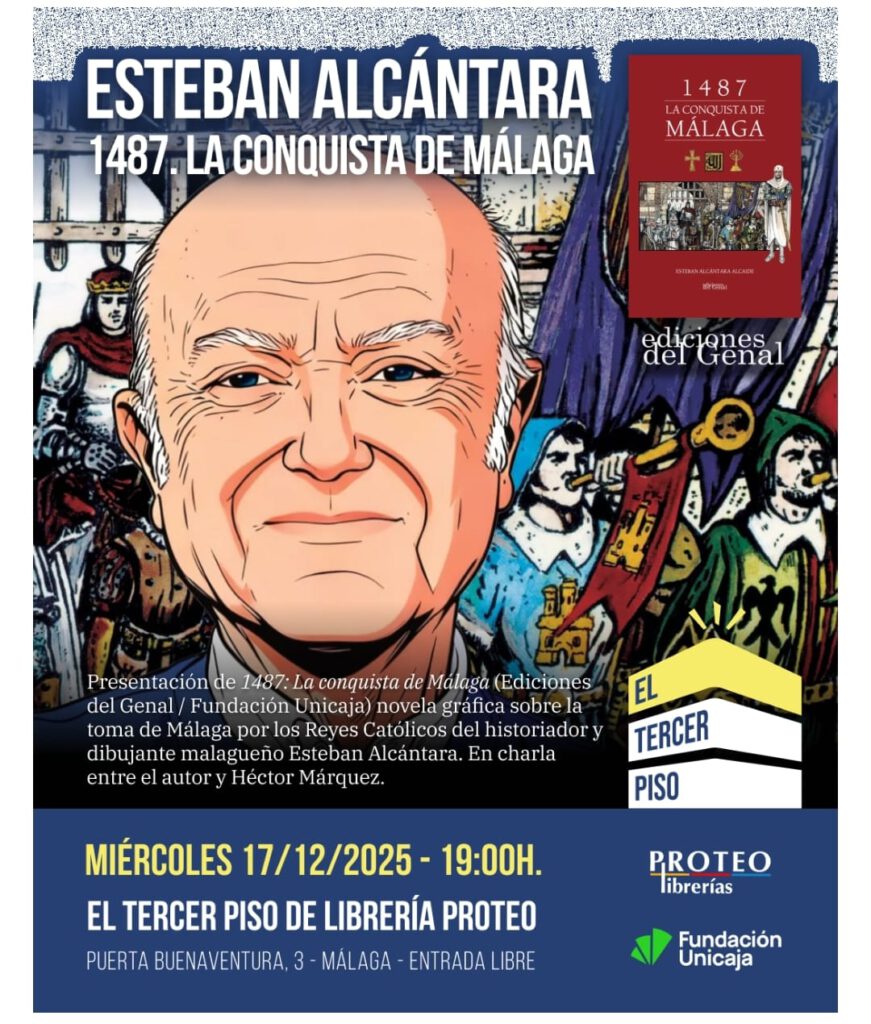 “1487: LA CONQUISTA DE MÁLAGA” fue publicado por primera vez, y en blanco y negro, en diciembre de 1993, cumpliéndose en 2025 los treinta y dos años de aquella edición. Por entonces, los jóvenes de nuestra capital, en general, desconocían a personajes como El Zegrí o Hernando Pérez del Pulgar, tampoco las vicisitudes del cerco de Málaga por parte de las tropas de los Reyes Católicos (lo experimenté porque, en aquel tiempo, ejercí la docencia). En todo caso, quise que la obra plasmara un respeto y comprensión hacia las religiones, islámica, hebrea y cristiana, y que el bien de la tolerancia existiera, de tal manera, que el día de su presentación había en el aforo, musulmanes, judíos y cristianos. Fue una experiencia muy positiva. Sin embargo, tanto en el relato como en las imágenes del libro, no debían sustraerse males de la época como, por ejemplo, que Dios estaba siempre a favor del bando propio. Y es que todavía habría que esperar a 1517, para que Erasmo de Rótterdam escribiera su Querela Pacis (Lamento de la Paz), y otros textos que expandieran una evolución diferente en cuanto al punto de vista del Dios “aliado”. Eran los destellos del Renacimiento. El concepto de la tolerancia no comenzó hasta el siglo XIX, con la llegada de la Declaración de los Derechos del Hombre y del Ciudadano. La libertad de creencia, opinión y expresión, se convirtió en un derecho inalienable ligado a la libertad de tomar las propias decisiones y de juzgar en conciencia. Sin embargo, no debemos perder de vista, que la decisión individual de obrar en conciencia, siempre ha existido, y perdurará en los seres humanos frente a las conductas generales y la imposición de los poderes; y esa conciencia, ese obrar diferente, aparece en varios personajes del libro, oponiéndose con valor al fanatismo, las supersticiones y la ignorancia, imperantes.