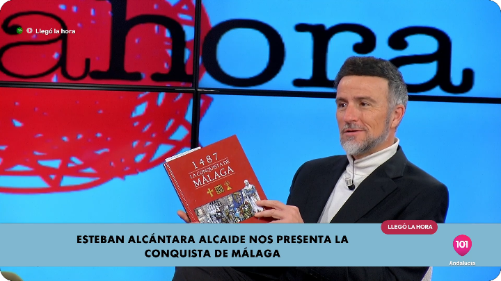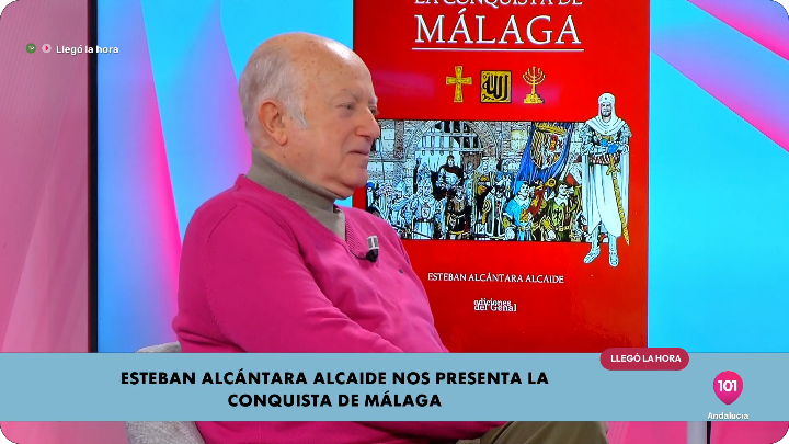 El pasado miércoles 14 de enero, en el programa “Llegó la hora”, dirigido por el locutor Roberto López, emitido por el canal 101 Televisión, fue presentado el libro “1487: la conquista de Málaga”, obra de nuestro presidente el historiador y dibujante de cómic históricos, Esteban Alcántara Alcaide. El programa fue muy bien llevado por Roberto López y, el autor, respondió de forma detallada y abundante a cuantas preguntas le realizó el versado locutor. La obra ha sido reeditada por segunda vez, por Ediciones del Genal, con una notable presentación que tuvo lugar el pasado mes de diciembre en la muy conocida librería Proteo. En esta edición, la obra ha aparecido con todas sus páginas al completo y, además, a color (pasada a acuarela por el propio autor), a diferencia de la primera edición de 1993, que se editó en blanco y negro. A través de los detallados dibujos del libro, el lector tiene la oportunidad de ir recorriendo los bastiones, murallas y edificios históricos que configuraron la Málaga musulmana de 1487.