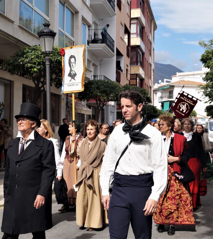 Asociación Torrijos 1831.- Un largo desfile, dividido en dos partes (interior de la ciudad y paseo marítimo), en homenaje a Salvador Manzanares, defensor de las libertades en nuestro país, tuvo lugar el pasado 1 de marzo en Estepona. El desfile estuvo integrado por conocidas asociacionesde recreaciones históricas de la provincia de Málaga y Cádiz, como «Manzanares. Estepona 1831», «Torrijos 1831», «Carmen de Ronda», «Vida y muerte de El Tempranillo. 1833», «Manifiesto Cortesano», «Batalla de la Puente. Montejaque 1810», «Bandoleros de Grazalema» y «Agustina bandolera de El Burgo». A vanguardia del desfile marcharon los presidentes de los colectivos implicados, seguidos de una escuadra de escopeteros a la usanza de 1831, creada recientemente en Estepona, por el colectivo «Manzanares. Estepona 1831»; detrás, la cuerda de presosliberales, escoltada por la sección uniformada de la Asociación Torrijos 1831, impecable en su prestancia y buen hacer, integrada por Paco Solano, Domingo Adán, José Luís Llorente, Juan Fernández Millán, José María Martín, José Antonio Millán, Juan Roastely Paco Gómez. Le seguía una escolta del Regimiento de Caballería Vitoria 4º de Ligeros, con el arrestado capitán Benítez (interpretado por Carlos Córcoles). A partir de ahí, y tras sus respectivos estandartes, todas las asociaciones implicadas, con sus mujeresy hombres vestidos de época. Datos sobre Salvador Manzanares, a continuación.