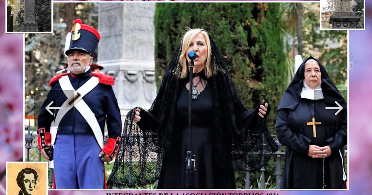 Creemos que, en el homenaje anual que el Ayuntamiento de Granada hace a la heroína liberal, Mariana de Pineda, no hay un momento más intenso, que ponga un nudo en la garganta de los espectadores, que cuando nuestra compañera Alicia Gallego da vida a los últimos momentos a la heroína liberal, con hermosas frases poéticas, no exentas en la interpretación, de fuerza y convicciones morales en la defensa de sus ideales, y que reflejan sobre todo, la vergüenza histórica del poder absoluto del monarca Fernando VII, que puso toda la maquinaria de su poder, con abusos policiales y judiciales por medio, para acabar con aquella joven mujer, cuyo valor inquebrantable le acompañó hasta el último suspiro de su vida. El alcalde de Granada, felicitó una vez más a Alicia y a toda la Asociación Torrijos 1831, que cada año comparece altruistamente, vestida de época, en la señalada fecha del 26 de mayo.