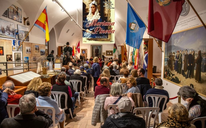 Organizado por la Asociación Torrijos 1831, y contando con la colaboración de la Concejalía de Cultura de Málaga, comenzó a las 19´00 h. del pasado 16 de enero, en el Centro de Interpretación Histórico José María Torrijos, en El Perchel, el acto del reconocimiento-homenaje realizado a la serie de TVE “Proceso a Mariana de Pineda”, al haberse cumplido los cuarenta años de su emisión. En el acto intervinieron destacados oradores, como la historiadora Antonina Rodrigo, biógrafa de Mariana, con varios libros escritos sobre ella; el gran pintor Antonio Montiel, retratista de Pepa Flores como Mariana de Pineda, en varias ocasiones; Esteban Alcántara, presidente de la Asociación Torrijos 1831 y biógrafo de José María Torrijos y Uriarte, y Manuel Rodríguez, Director del Centro Europeo de la Mujer, con sede en la Casa de Mariana de Pineda en Granada. Presentó el acto Flori Sastre, y actuaron, Alicia Gallego como Mariana de Pineda, acompañada en la escenografía por la representación de una escolta de soldados y una monja de Santa María Egipciaca; Enrique Parapar, como ilustrado de principios del XIX, relator de los excesos cometidos durante la “Década Ominosa” (1823-1833); Carmen Casán con una impresionante aportación flamenca, Carlos Corcoles, interpretando de forma convincente al cruel alcalde del Crimen, Ramón Pedrosa, y Juan Gavilán representando a un agente gubernativo. El control de sonido e imágenes, corrió a cargo de Juanma Martín. Hubo una importante representación granadina, con Bienvenido López, bibliotecario del Centro Europeo de la Mujer, de Granada, y Antonio Pérez, coordinador del Club de los Libros Perdidos de Granada, acompañados por un grupo de personas procedentes de la capital del Darro. También estuve presente una representación del Distrito Centro de Málaga, y estuvieron presentes, importantes colectivos de recreaciones históricas de la provincia de Málaga, como la Orden de Granaderos y Damas de Gálvez de Macharaviaya, o Manzanares. Estepona 1831. Culturales, como AMADUMA, con su presidenta al frente; folclóricas, como Solera, representada por su presidente Ramón, o vecinales como las de El Perchel y Trinidad, representados por sus respectivas presidencias, y también, de artistas notorios malagueños, como el cantaor Manolo Garrido. Hubo un impresionante llenazo que completó el aforo del Centro de Interpretación Histórico José María Torrijos. Todo un éxito.