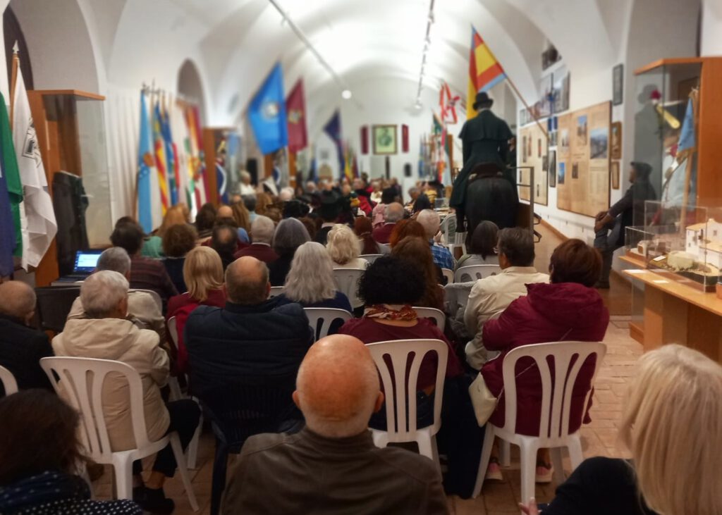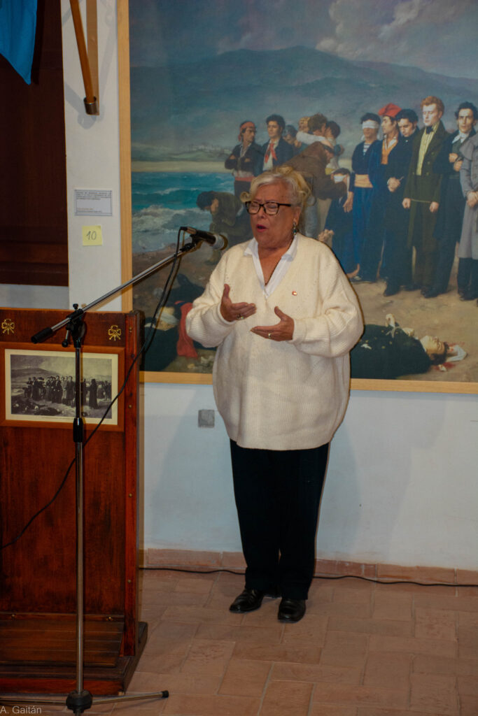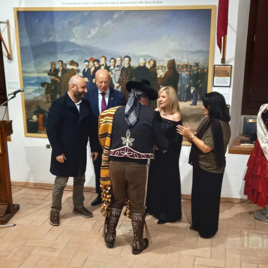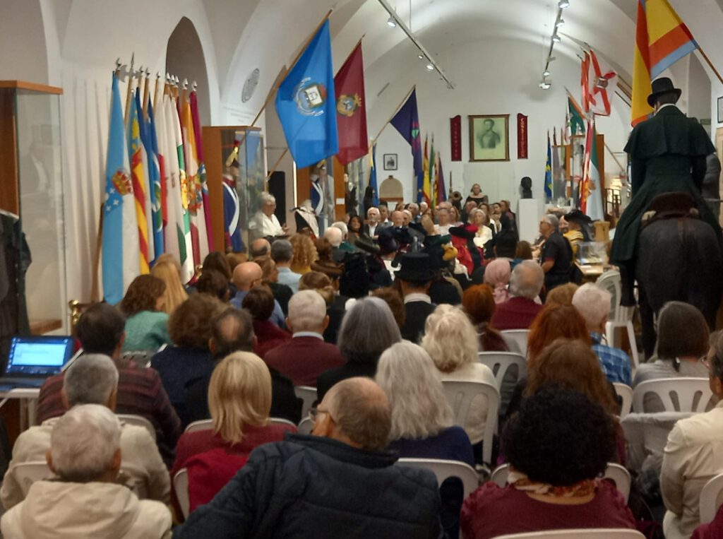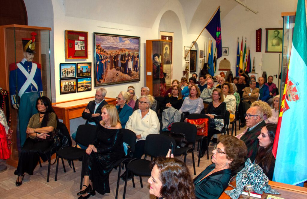 Con el aforo completo en el Centro de Interpretación Histórico José María Torrijos, se procedió a abrir el acto por parte de la secretaria de la Asociación, Flori Sastre, que resaltó la gran actividad cultural e histórica, desarrollada por la Asociación desde 2002, en torno a la figura histórica del general Torrijos y sus compañeros de infortunio, colectivo que tiene la distinción de ser el más antiguo de recreaciones históricas en Andalucía, ya que la primera que llevó a cabo fue la conocida “Cuerda de presos” de Torrealquería, seña de identidad de la Asociación Torrijos 1831. Flori Sastre también distinguió el gran patrimonio de la Asociación expuesto en el Centro de Interpretación, así como el importante Archivo Torrijos repleto de documentación importante, como de la muy completa biblioteca liberal relativa a la primera mitad del siglo XIX. Continuó el discurso del presidente de la Asociación, Esteban Alcántara, que dio valor a todo lo que hecho en los últimos veinticuatro años, en cuanto a la memoria de Torrijos y sus compañeros, manteniéndose vivas las ilusiones, ideales y la labor diaria, incluyendo el servicio de voluntariado que el colectivo realiza a diario, para atender las diversas visitas y actos que le son solicitados al Centro de Interpretación Histórico José María Torrijos. Estuvieron presentes relevantes asociaciones, como las vecinales de Cíviles, Torrijos de Huelín y el Perchel; recreadoras, como la de los Bandoleros de Benamejí, con representación de las autoridades de esa localidad, o culturales como la de las Terrazas.