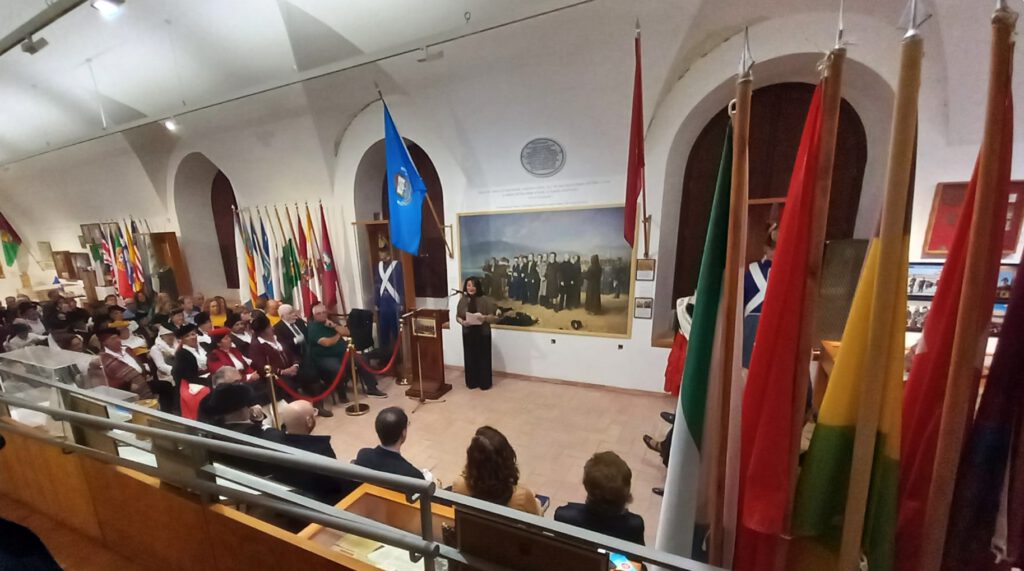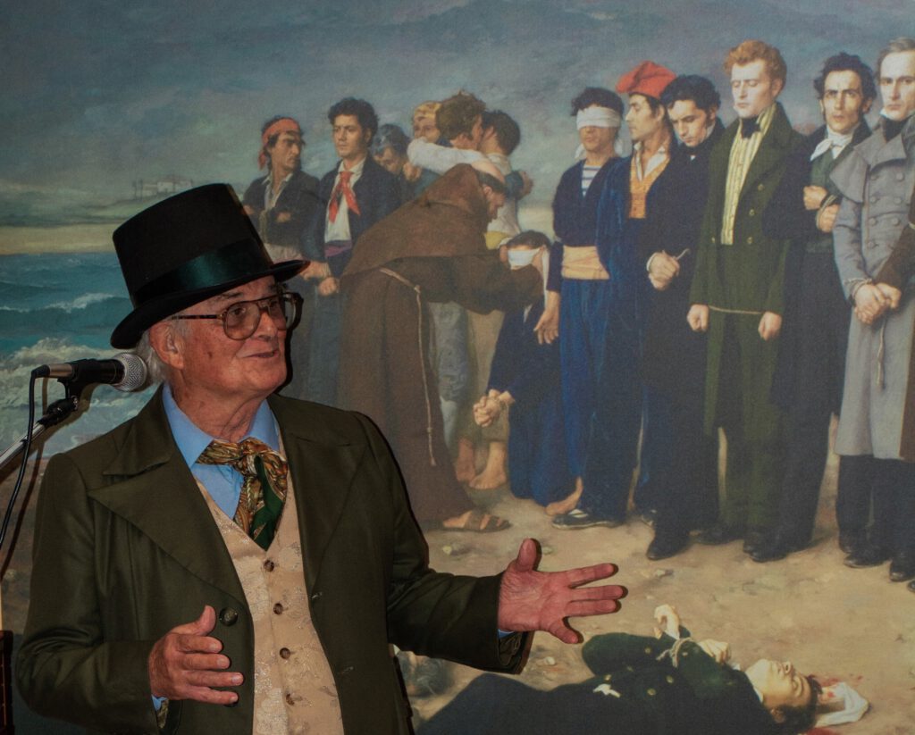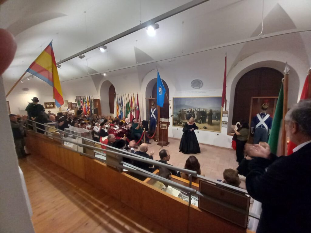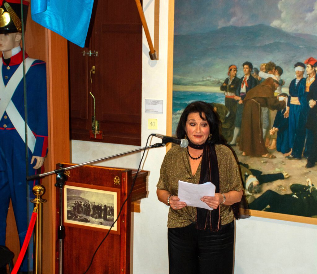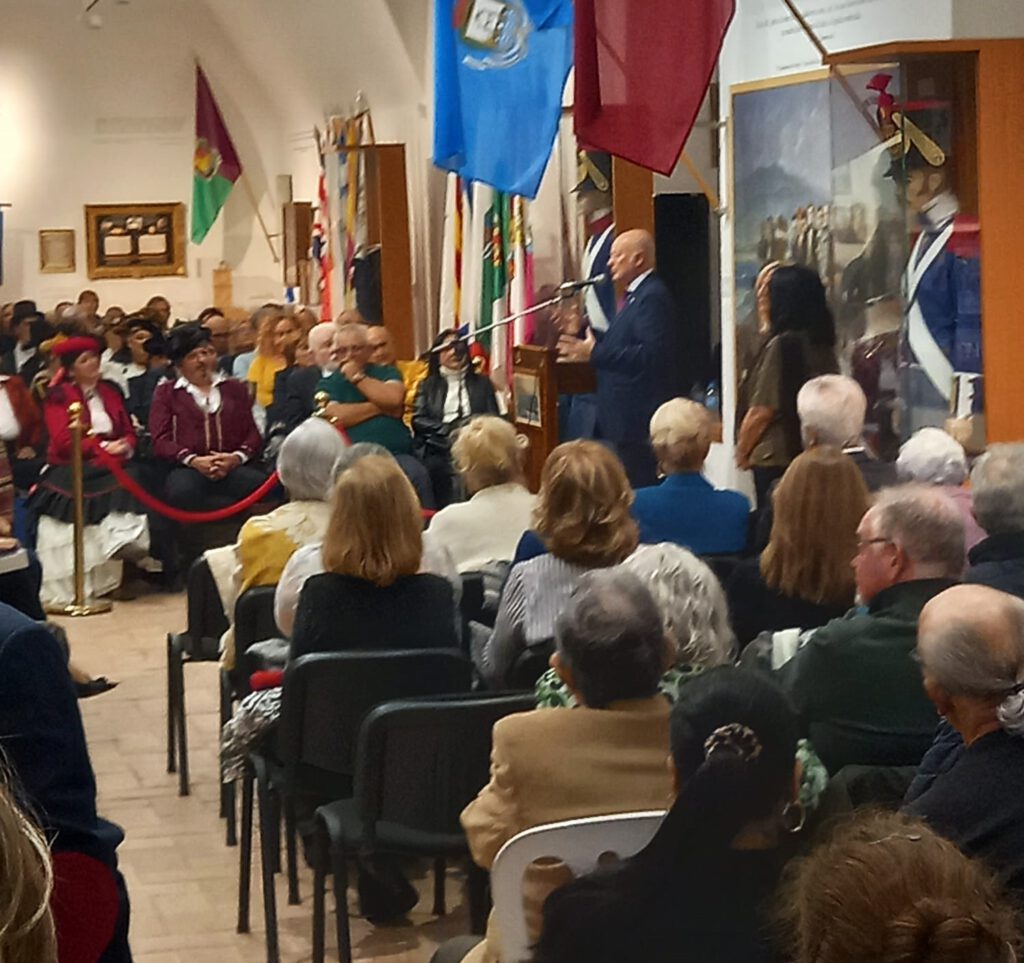 Con el aforo completo en el Centro de Interpretación Histórico José María Torrijos, se procedió a abrir el acto por parte de la secretaria de la Asociación, Flori Sastre, que resaltó la gran actividad cultural e histórica, desarrollada por la Asociación desde 2002, en torno a la figura histórica del general Torrijos y sus compañeros de infortunio, colectivo que tiene la distinción de ser el más antiguo de recreaciones históricas en Andalucía, ya que la primera que llevó a cabo fue la conocida “Cuerda de presos” de Torrealquería, seña de identidad de la Asociación Torrijos 1831. Flori Sastre también distinguió el gran patrimonio de la Asociación expuesto en el Centro de Interpretación, así como el importante Archivo Torrijos repleto de documentación importante, como de la muy completa biblioteca liberal relativa a la primera mitad del siglo XIX. Continuó el discurso del presidente de la Asociación, Esteban Alcántara, que dio valor a todo lo que hecho en los últimos veinticuatro años, en cuanto a la memoria de Torrijos y sus compañeros, manteniéndose vivas las ilusiones, ideales y la labor diaria, incluyendo el servicio de voluntariado que el colectivo realiza a diario, para atender las diversas visitas y actos que le son solicitados al Centro de Interpretación Histórico José María Torrijos. Estuvieron presentes relevantes asociaciones, como las vecinales de Cíviles, Torrijos de Huelín y el Perchel; recreadoras, como la de los Bandoleros de Benamejí, con representación de las autoridades de esa localidad, o culturales como la de las Terrazas.