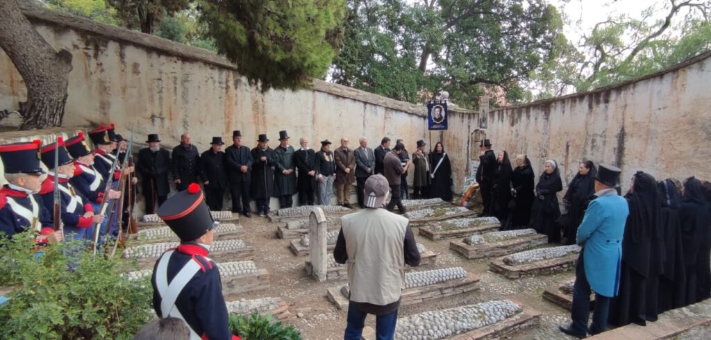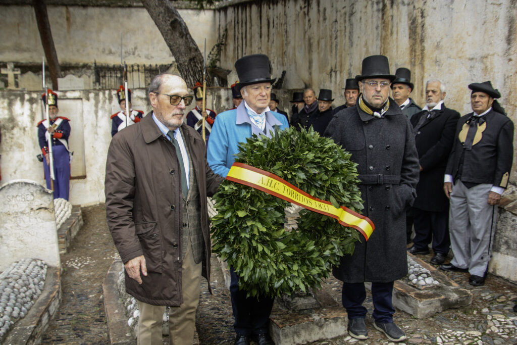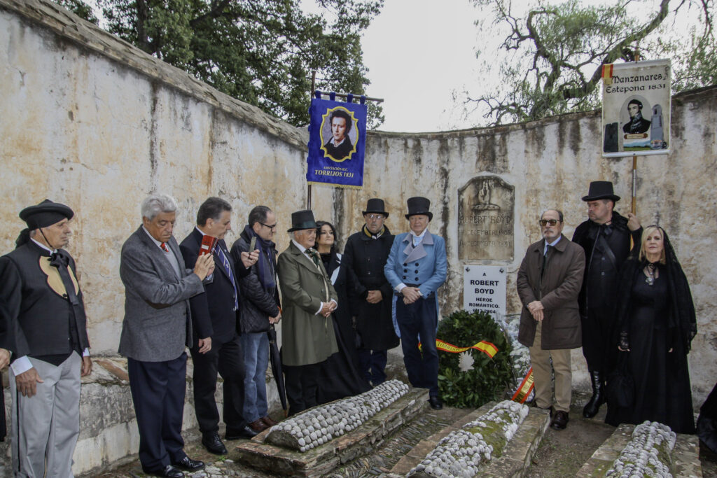 Este año, los tradicionales homenajes que desde 2004 realiza la Asociación Histórico Cultural Torrijos 1831 en memoria de Robert Boyd, cada 11 de diciembre, en el Cementerio Inglés de Málaga, se han visto realizados, conjuntamente, con las asociaciones, Manzanares. Estepona 1831, Coloraos de Almería, Vecinos de El Perchel Club Liberal de Málaga 1812, y el Supremo Concejo (que colocó un ramo de flores). Presentó el acto el historiador Esteban Alcántara que glosó la figura de Robert Boyd, uno de los principales hombres de Torrijos, y el único británico que se mantuvo firme hasta el final, para acompañar al general liberal en aquella arriesgada empresa. Le siguieron las actuaciones de Enrique Parapar y Alicia Gallego, que recitaron bellos poemas dedicados a Boyd, terminando con el cante de Mari Carmen Casán que interpretó “La cuerda de presos”. La tropa presentó armas cuando correspondió, y los presidentes de los colectivos Torrijos 1831, Manzanares de Estepona y el Club Liberal 1812, pusieron, conjuntamente, una corona de laurel en la cabecera de la tumba de Boyd (que preside una lápida puesta por la Asociación Torrijos 1831 por los actos llevados a cabo en 2004, que contaron con trece componentes de la familia Boyd).