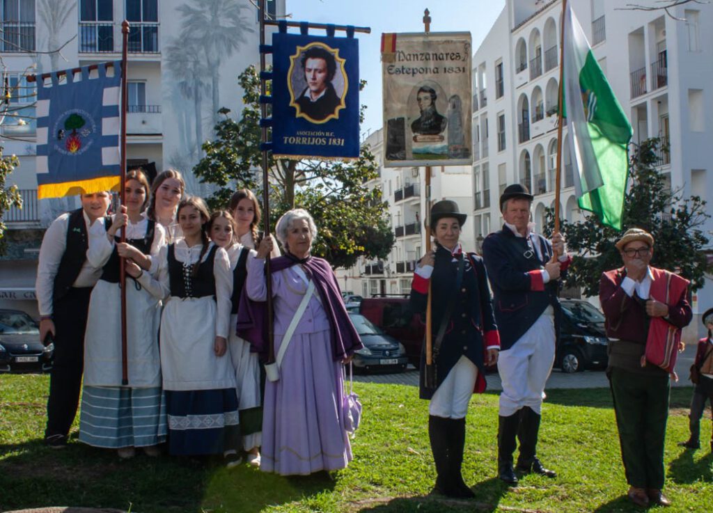 Hasta diez recreaciones históricas de Andalucía, con doscientas cincuenta personas vestidas de época, han participado este año en los actos de homenaje al coronel Salvador Manzanares, en Estepona, entre ellas la Asociación Histórico Cultural Torrijos 1831. El pasado domingo 8 de marzo, el primero de los actos comenzó en los jardines del Orquidiario, a las 11´00 h. donde se realizó la recreación histórica de la detención y muerte del jefe liberal, que históricamente tuvo lugar en el paraje de la Romera, tras la delación que sufrió a manos de los hermanos Gil, pastores de Igualeja. Junto con otros colectivos, treinta integrantes de la Asociación Histórico Cultural Torrijos 1831, participaron en esta ocasión, bien como tropas realistas al mando del teniente coronel Matilde Monasterios, o como paisanaje.
